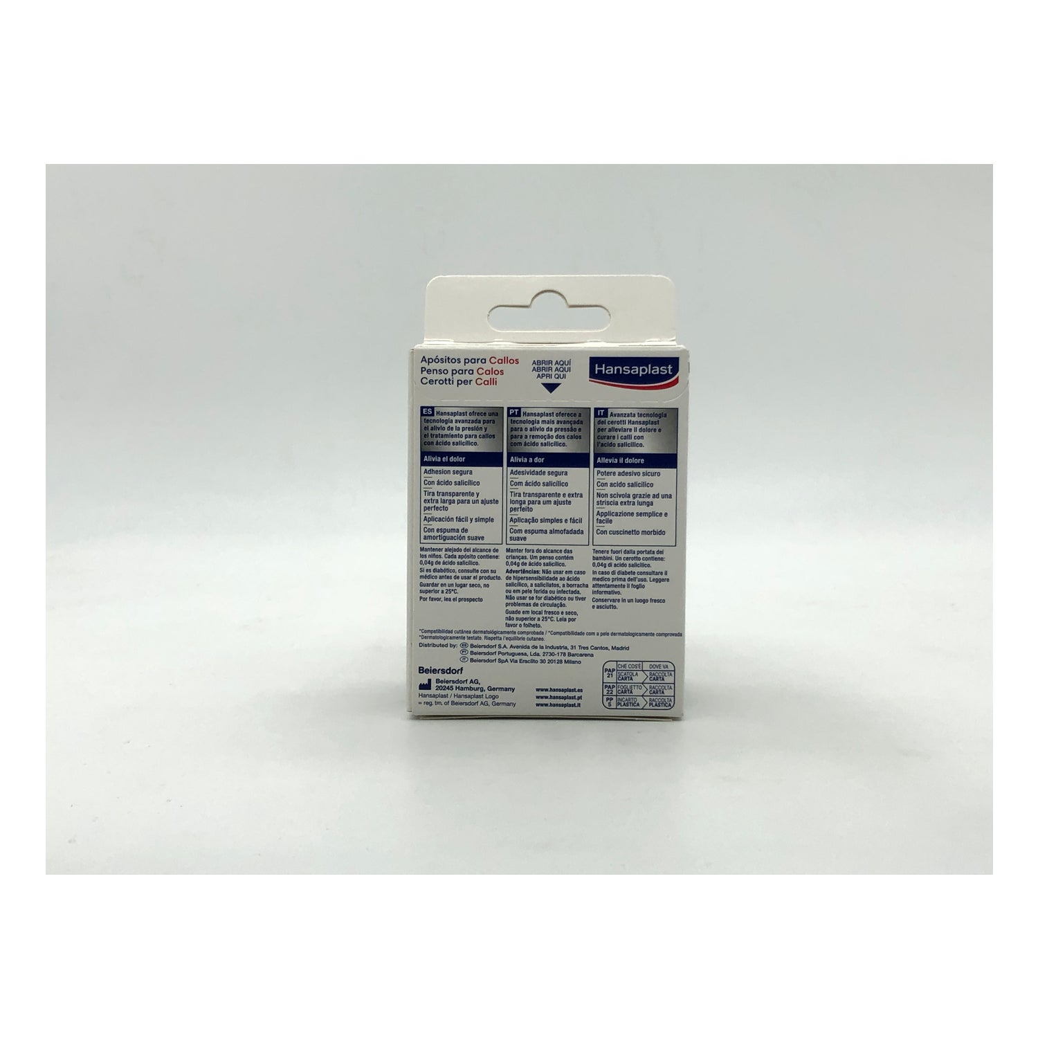 Hansaplast Hornhautpflaster 8 Stück sind Schutzpflaster, die dazu beitragen, den Schmerz zu lindern, der durch Reibung und Druck des Schuhwerks auf die Hornhaut der Füße verursacht wird.