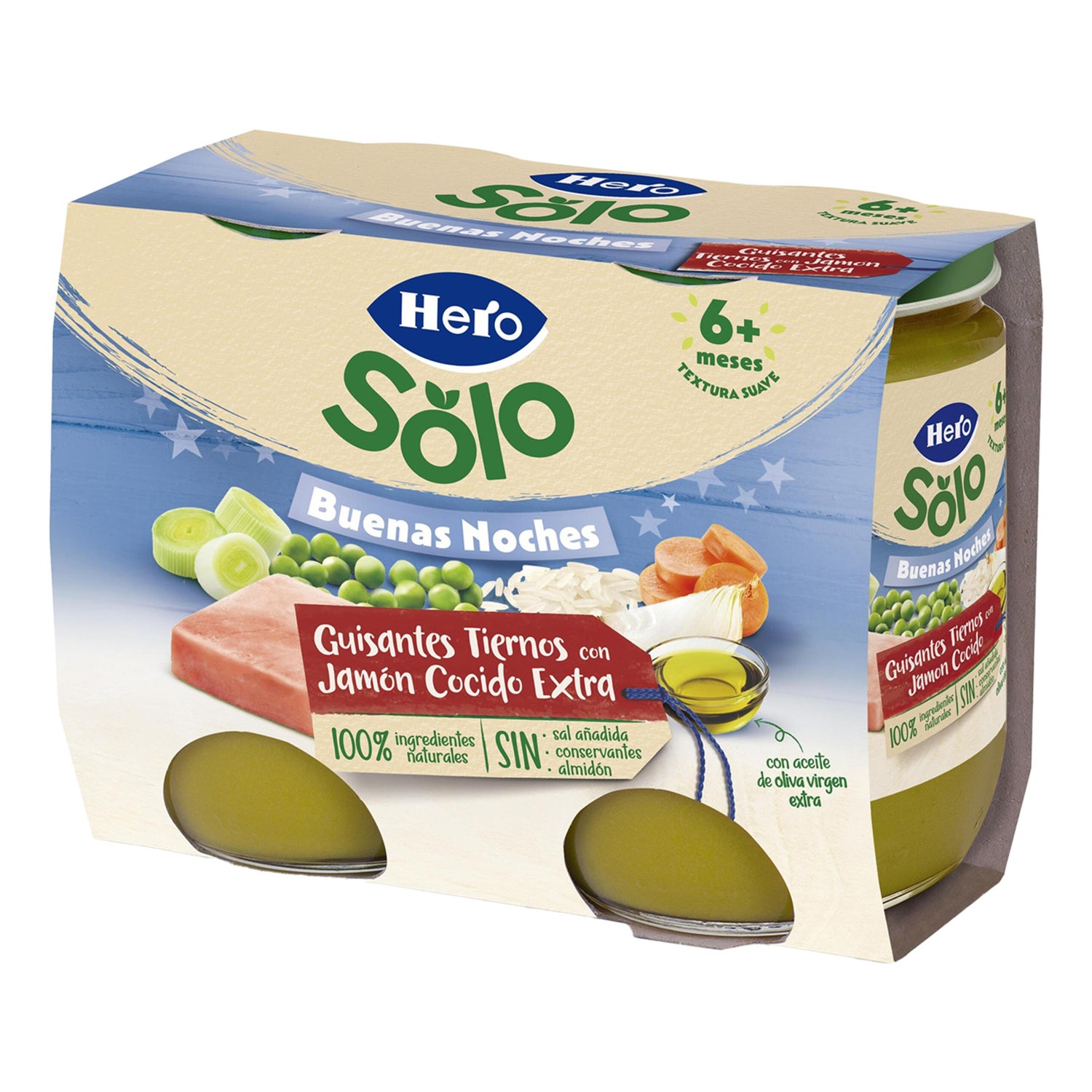 Hero Baby Gute Nacht Erbsen Schinken ist ein Produkt, das für Babys ab sechs Monaten entwickelt wurde. Dieses Paket enthält zarte Erbsen mit gekochtem Schinken, hergestellt nach den hohen Qualitätsstandards von Hero. Es enthält kein Gluten, keinen zugesetzten Zucker und keine Stärke, was es zu einer geeigneten Option für die Kleinsten macht.