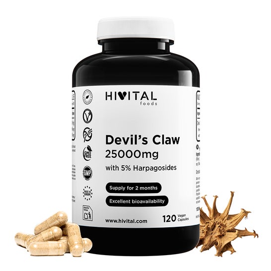 DER BESTE HARPAGOFITO: Jede Dosis (2 Kapseln) enthält 1000 mg natürlichen Harpagophytum Procumbens-Extrakt mit einem Konzentrationsverhältnis von 25:1, was 25000 mg Harpagofito und 5% Harpagoside entspricht, was 50 mg Harpagoside pro Dosis entspricht.