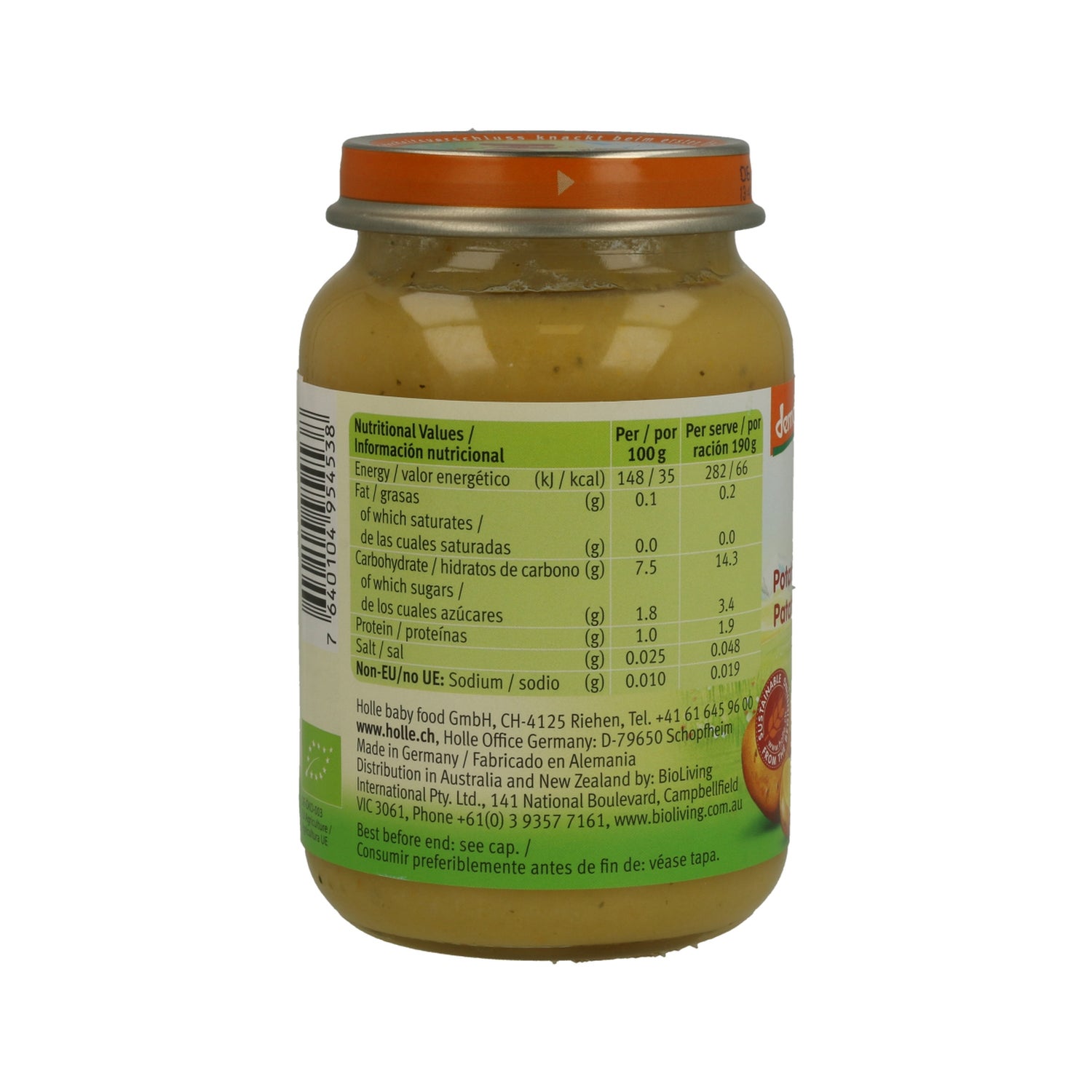 Holle Potito Kartoffel Kürbis Zucchini ist ein Produkt, das entwickelt wurde, um zu einer ausgewogenen und gesunden Ernährung beizutragen. Dieses Gläschen, das Zucchini, Kürbis und Kartoffel aus ökologischem Anbau kombiniert, ist ideal, um dem Baby zu helfen, sich an Lebensmittel mit festerer Konsistenz zu gewöhnen. Es wird empfohlen, es ab dem sechsten Monat zu verwenden, um den Übergang zur Beikost zu erleichtern.