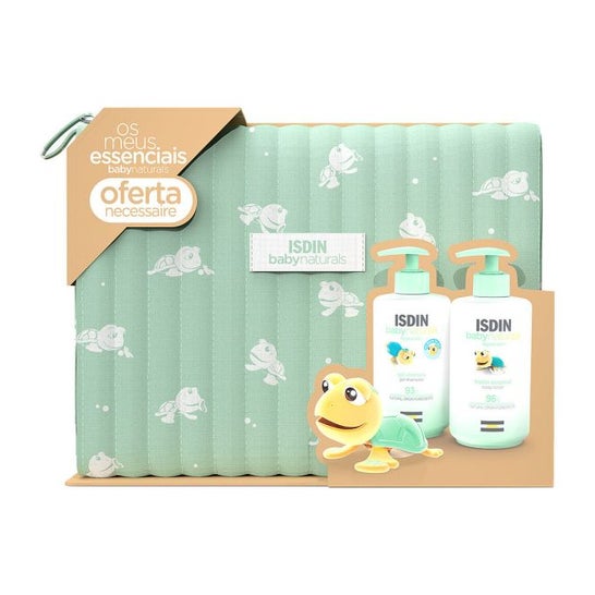 Isdin Kit Baby Naturals Gel-Shampoo + Körperlotion + Necessaire ist eine Kollektion, die für die sanfte Pflege der Haut der Kleinsten entwickelt wurde. Dieses Set enthält: