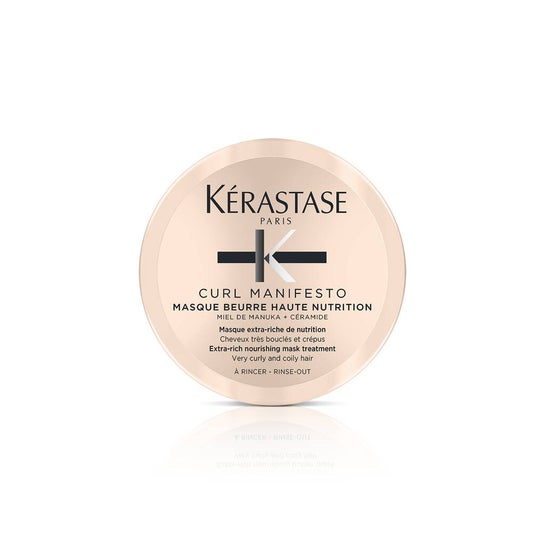 Kérastase Curl Manifesto Masque Beurre Haute Nutrition ist eine nährende Maske, die speziell für sehr lockiges und krauses Haar entwickelt wurde. Dieses Produkt ist mit Manuka-Honig und Ceramid angereichert, Zutaten, die folgendes bieten: