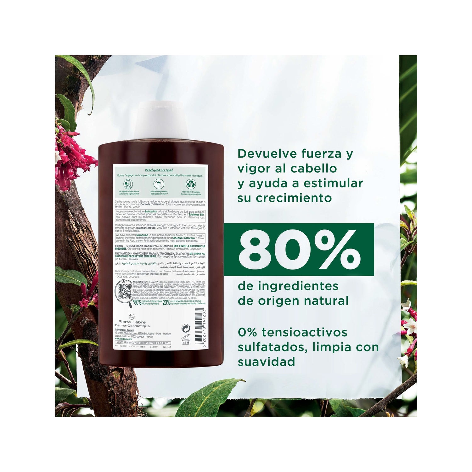 Klorane Shampoo mit Chinin gegen Haarausfall, stärkend & stimulierend 400 ml ist ein Shampoo, das hilft, es zu regenerieren, da es das Haarwachstum anregt und ihm seine Stärke und Farbe zurückgibt.