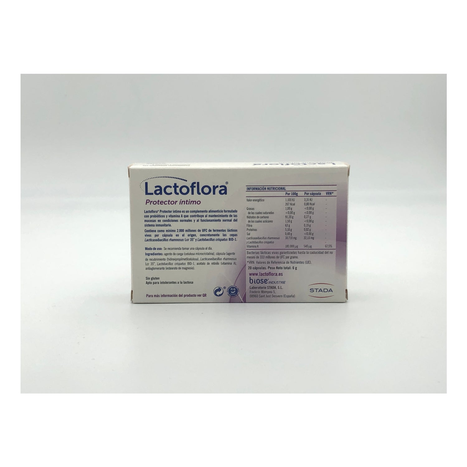 Lactoflora Protector Íntimo 20caps ist ein Probiotikum, das auf Vitamin A und Lactobacillus crispatus BID-1 basiert.