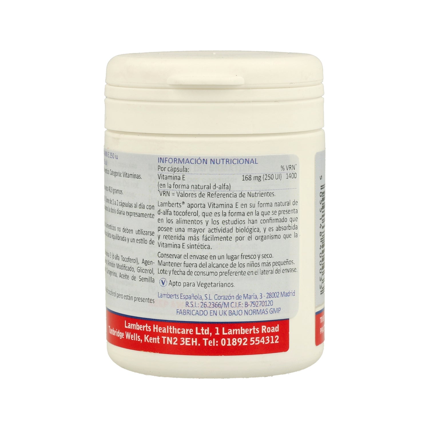 Lamberts Vitamin E ist ein Nahrungsergänzungsmittel auf der Basis von Vitamin E, reich an Antioxidantien, das die Zellen vor oxidativen Schäden durch freie Radikale schützt und zur normalen Funktion des Herzens beiträgt, da es verhindert, dass mehrfach ungesättigte Fette gesättigt werden.