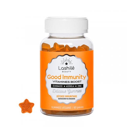 Lashilé Good Immunity 60 gummies ist ein Nahrungsergänzungsmittel mit Orangengeschmack, das zur Stärkung und Stimulierung des Immunsystems beiträgt und gleichzeitig die körperliche Leistungsfähigkeit fördert.