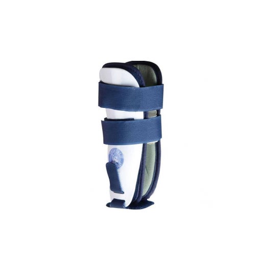 Starre Knöchelorthese aus Kunststoff mit Schaumstoffpolstern und selbstklebendem Verschluss. Bietet Stabilität und Kompression für den Knöchel und fördert die Genesung nach Verletzungen. Geeignet für Kinder bis zu einer Körpergröße von 140 cm.