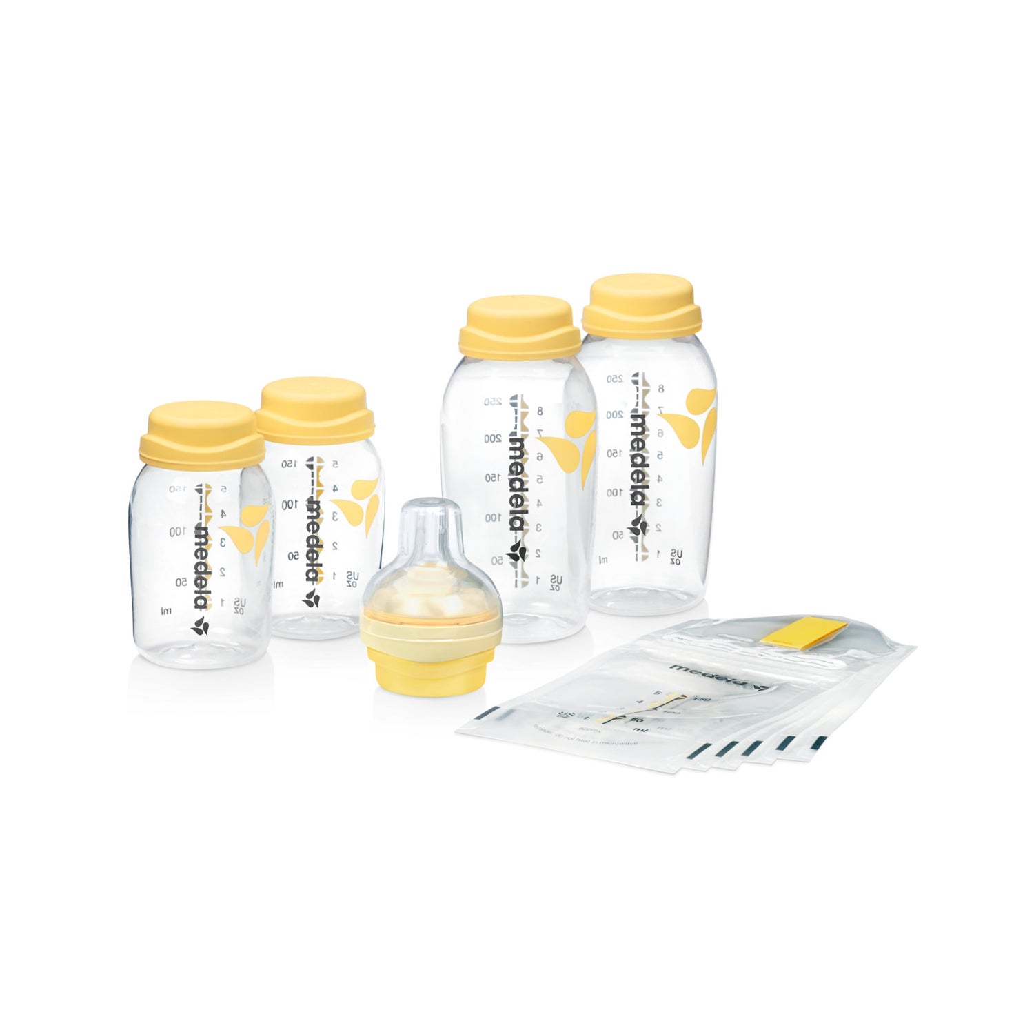 Das Medela-Set Sammlung und Fütterung ist ein Paket zur Aufbewahrung von Muttermilch und zum Füttern des Babys. Das Paket enthält die folgenden Produkte: