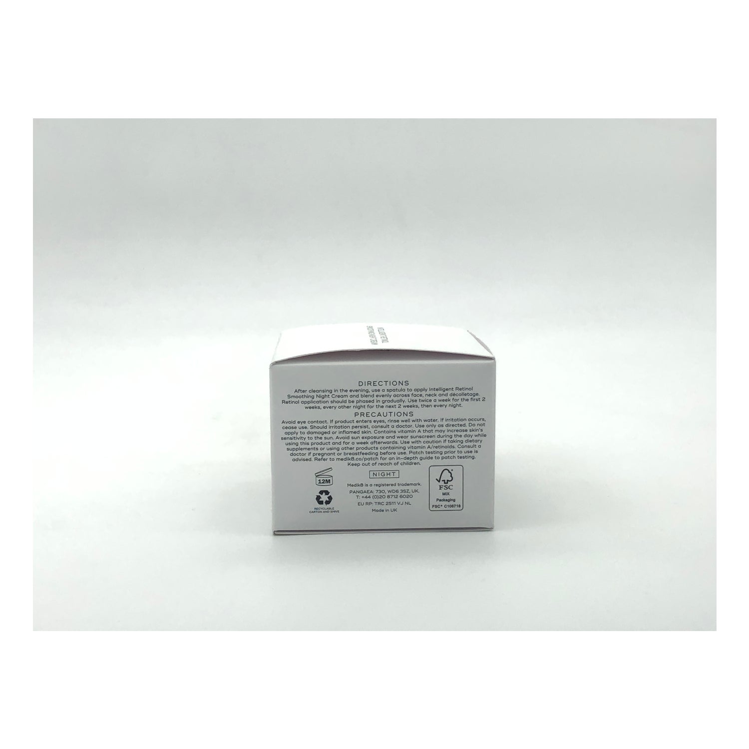 Vermeiden Sie den Kontakt mit den Augen. Falls das Produkt mit den Augen in Kontakt kommt, spülen Sie sie gründlich mit Wasser aus. Bei Irritationen die Anwendung einstellen. Wenn die Irritation anhält, konsultieren Sie einen Arzt. Nur gemäß den Anweisungen verwenden. Nicht auf beschädigter oder entzündeter Haut anwenden. Enthält Vitamin A, das die Empfindlichkeit der Haut gegenüber Sonnenlicht erhöhen kann. Vermeiden Sie Sonnenexposition und verwenden Sie tagsüber Sonnenschutzmittel, während Sie dieses Produkt verwenden und eine Woche danach. Vorsicht bei der Einnahme von Nahrungsergänzungsmitteln oder der Verwendung anderer Produkte, die Vitamin A/Retinoide enthalten. Konsultieren Sie einen Arzt, wenn Sie schwanger sind oder stillen, bevor Sie dieses Produkt verwenden. Es wird empfohlen, einen Patch-Test vor der Anwendung durchzuführen.