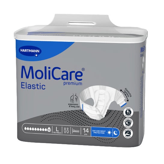 Molicare Premium Elastic 10 Tropfen Größe L 14 Einheiten ist eine Lösung, die entwickelt wurde, um Komfort und Effizienz zu bieten. Dieses Produkt verfügt über eine fortschrittliche absorbierende Kerntechnologie, bekannt als MoliCare SkinGuard®, die eine schnelle Absorption von Urin ermöglicht und ein sofortiges Trockenheitsgefühl vermittelt.