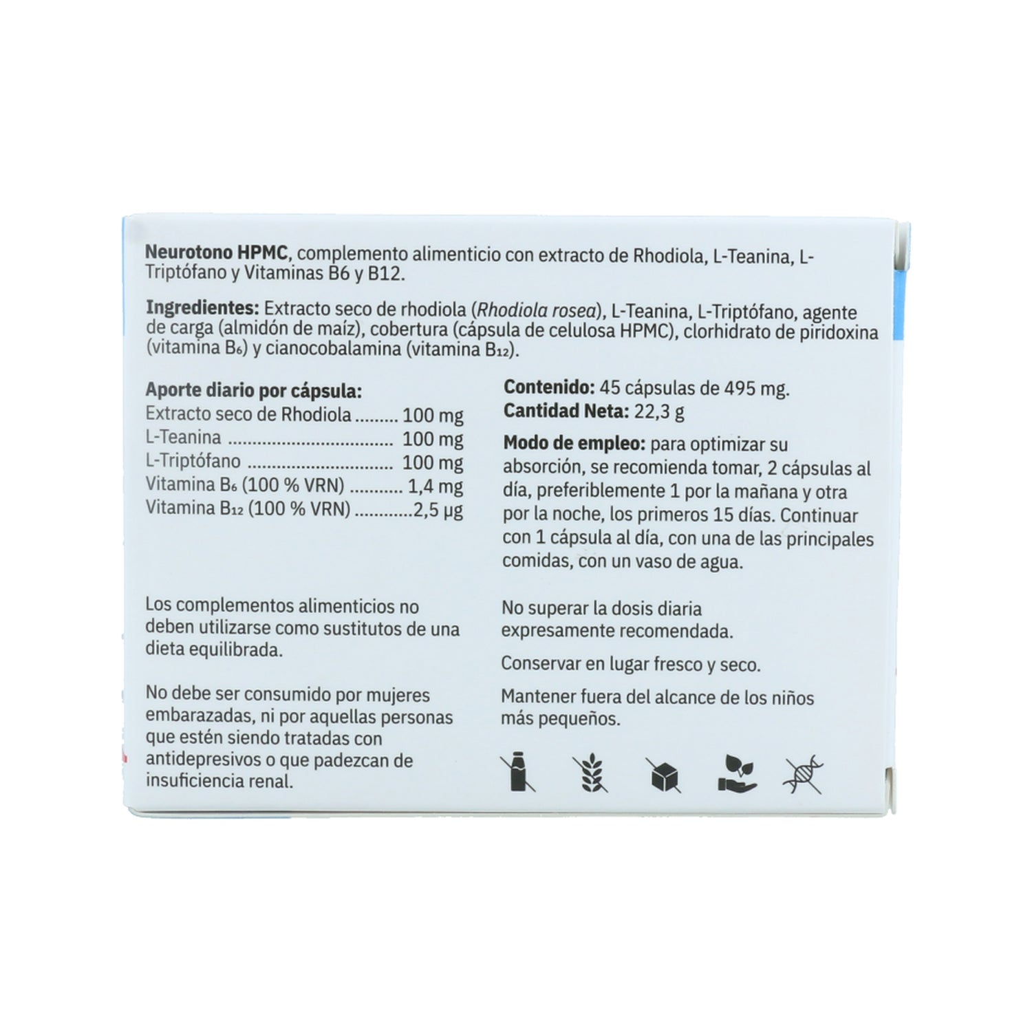 MontStar Neurotono 45caps ist ein Nahrungsergänzungsmittel mit Tryptophan, Rhodiola und Theanin, das bei der Kontrolle nervöser Zustände hilft. Seine Vorteile für den Körper äußern sich in einer Verbesserung der Vitalität, einer besseren Stressresistenz, einem besseren Gedächtnis und einer besseren Konzentration, einem normalen Blutkreislauf und einem normalen Schlaf. Präsentation 45 Kapseln.