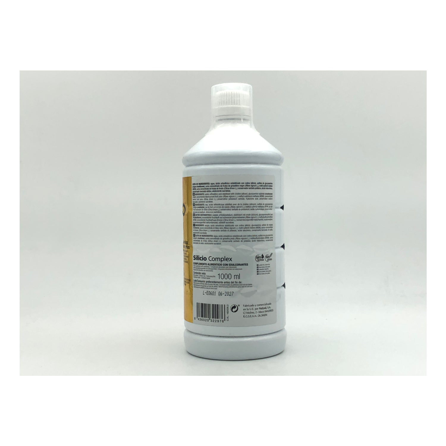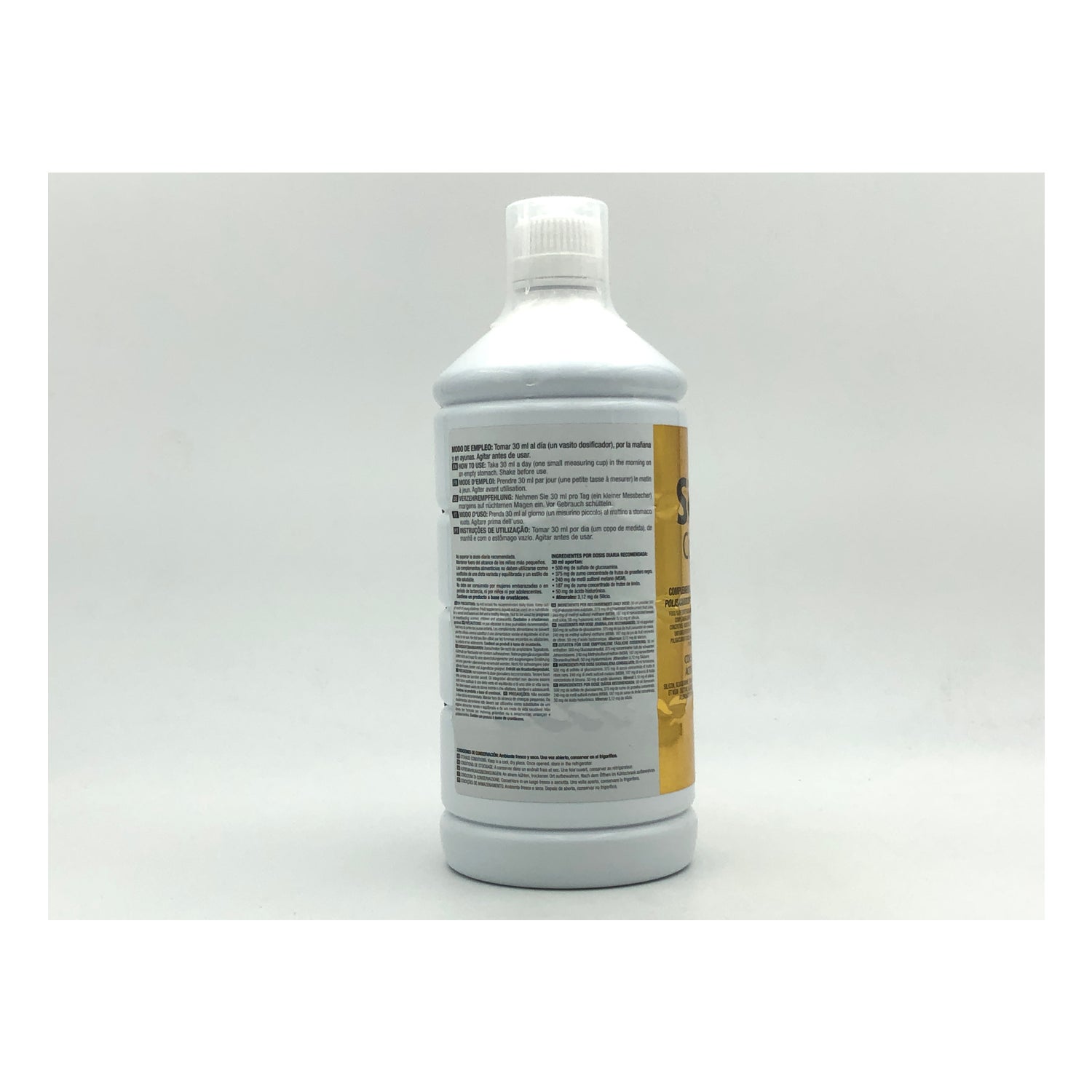 Wasserverdünner, Gluoosaminsulfat, mit Cholin (Silikon) stabilisierte Orthosilfcinsäure, konzentrierter Saft von schwarzen Johannisbeerfrüchten (ribes nigrum l.)), Methylsulfonylmethan (msm), konzentrierter Zitronenfruchtsaft (crtius medica limón l.), Konservierungsmittel Kaliumsorbat, Hyaluronsäure, Süßstoff Sucralose, Konservierungsmittel Natriumbenzoat.