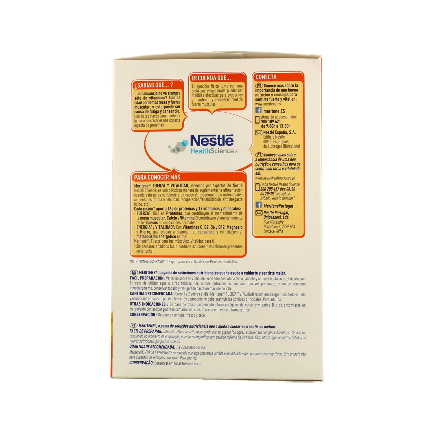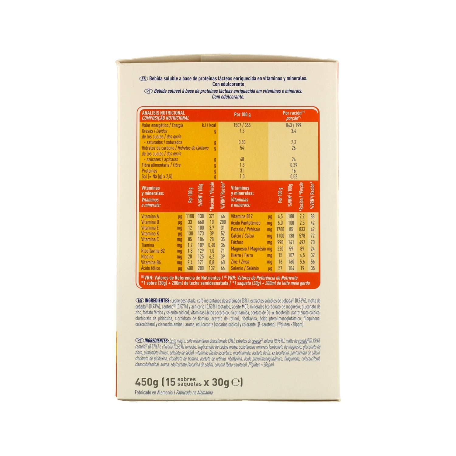 Nestlé Meritene Strength and Vitality Decaffeinated Coffee Flavour 15 sachets ist ein Nahrungsergänzungsmittel in Form von Pulver zur Herstellung eines Shakes mit einem angenehmen Kaffeegeschmack.