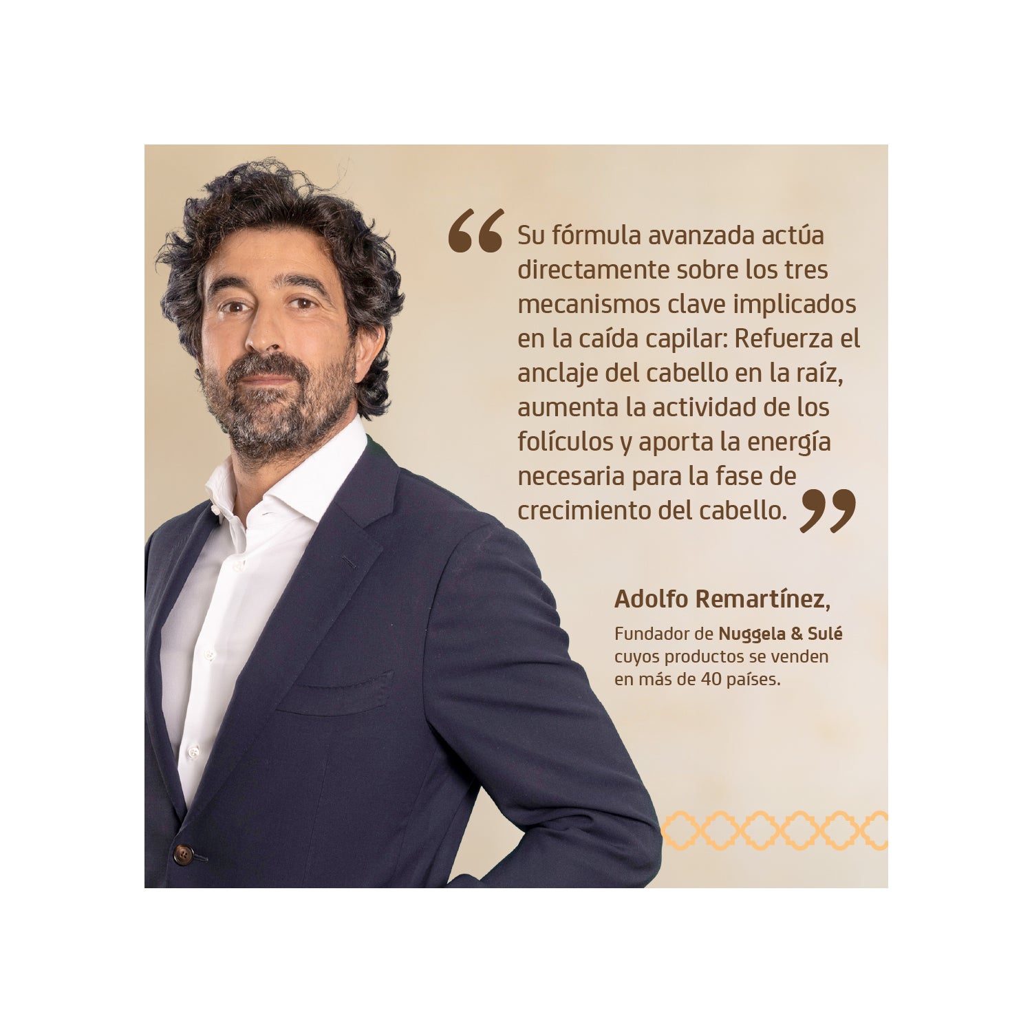 Seine fortschrittliche Formel wirkt direkt auf die drei Schlüsselmechanismen, die am Haarausfall beteiligt sind: Stärkt die Verankerung der Haare in der Wurzel, erhöht die Aktivität der Follikel und verringert die Entzündung der Kopfhaut.