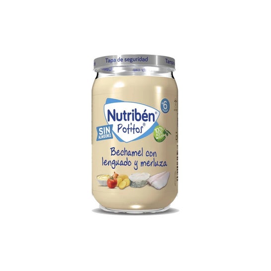 Nutriben Potitos Bechamel mit Flunder und Merlan 235 g ist eine ideale Option für Babys ab 6 Monaten, die dafür entwickelt wurde, dass die Kleinsten neue Geschmäcker entdecken können. Dieses Gläschen ist hergestellt aus: