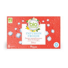 Diese Bio-Kaltinfusion von Vitavea Santé kombiniert die Vorteile der Pflanzen mit einem erfrischenden Geschmack, der Grapefruit und Orangenblüte mischt. Bestehend aus: