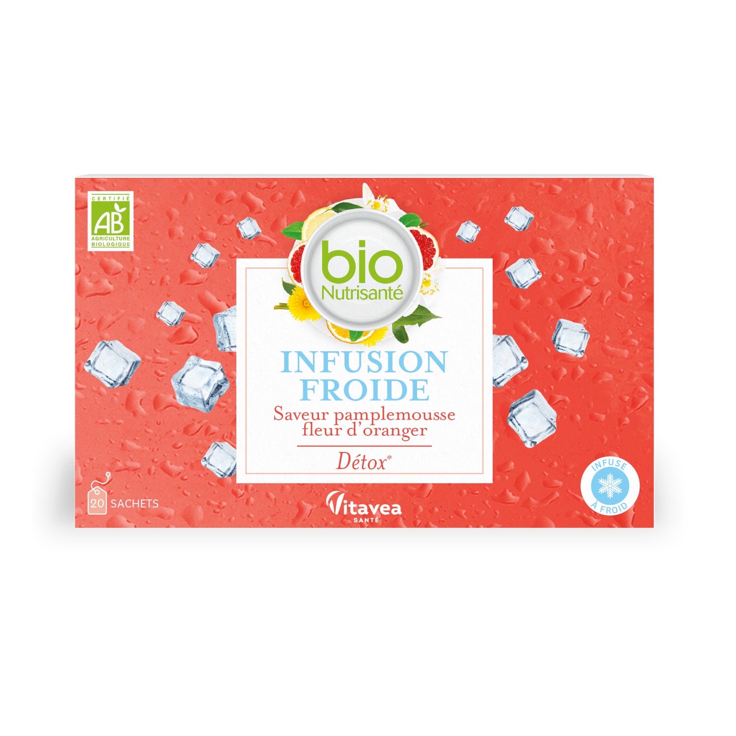 Nutrisanté Infusion Kalt Detox 20 Beutel ist eine aromatisierte Zubereitung für eine Infusion auf Basis von Pflanzen, die dazu dient, den Körper zu entgiften und zu reinigen.
