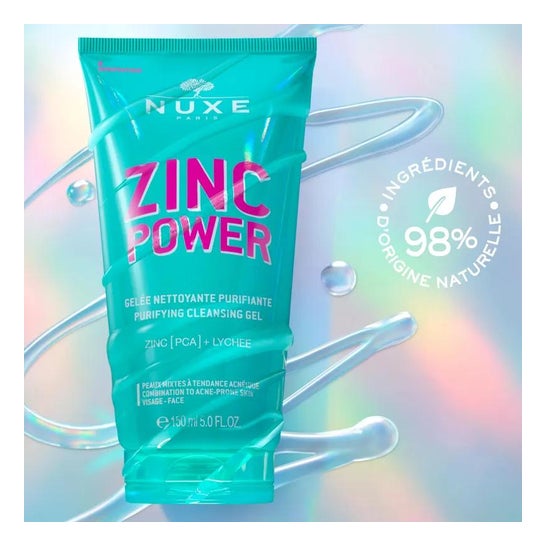 Nuxe Zinc Power Gel reinigende Reinigungsgel 150ml ist dafür konzipiert, sanft zu reinigen, während es mattiert und die Poren schließt, ohne die Haut auszutrocknen.