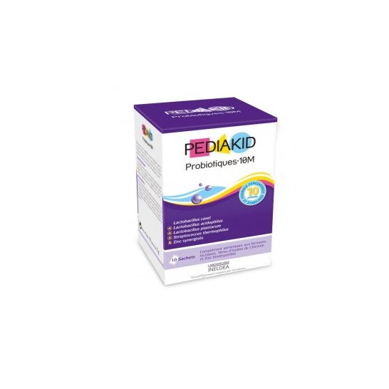 Pediakid Probiotiques-10M 10 Umschläge ist ein Nahrungsergänzungsmittel auf der Basis von 4 Stämmen von Probiotika mit einem garantierten Gehalt von 10 Milliarden pro Umschlag und Zink, das die Darmflora wieder ins Gleichgewicht bringt. Pediakid Probiotiques-10M wurde aus Milchfermenten (Lactobacillus casei, Lactobacillus acidophilus, Lactobacillus plantarum, Streptococcus thermophilus) entwickelt, die sorgfältig ausgewählt wurden, um die Darmflora wieder ins Gleichgewicht zu bringen. Seine Formel mit Chicorée-Inulin hilft, das Wachstum der guten Darmbakterien zu fördern. Um die Immunität zu stärken, ist Pediakid Probiotiques-10M reich an Zink. Da es in Form von Bisglycinat vorliegt, ist seine Bioverfügbarkeit optimal. Dieses Produkt ist für Kinder ab 6 Monaten geeignet. Die Darmflora von Kindern ist unreif und besonders empfindlich gegenüber Veränderungen. Eine unausgewogene Ernährung, Wachstumsstress oder die Einnahme von Antibiotika können sie aus dem Gleichgewicht bringen. Diese konzentrierte und stabilisierte Formel ist glutenfrei, geschmacksneutral und frei von Farbstoffen und sollte im Rahmen einer abwechslungsreichen und ausgewogenen Ernährung und einer gesunden Lebensweise eingenommen werden. Die empfohlene Dosis darf nicht überschritten werden.