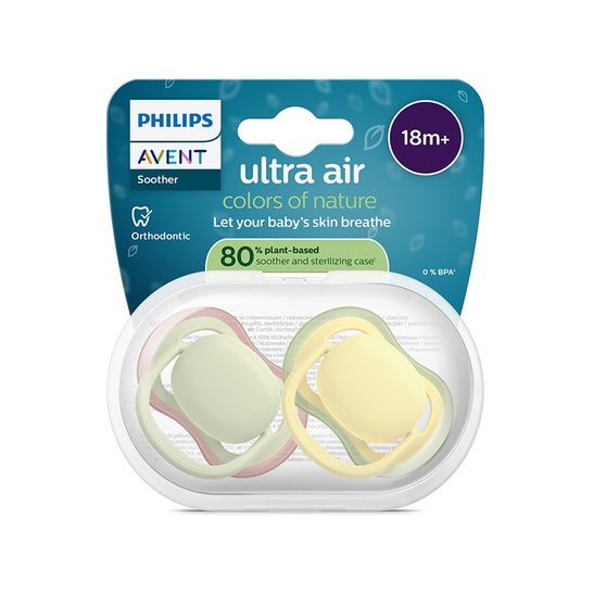 Philips Avent Ultra Air 18M+ Gelb Lichtgrün 2 Stück ist ein Schnuller, der für den maximalen Komfort während der Zahnung entwickelt wurde. Dieses Produkt ist geeignet für Babys ab 18 Monaten und kombiniert ein innovatives Design mit einem starken Engagement für Nachhaltigkeit, indem es bei der Herstellung 80% pflanzliche Materialien verwendet. Dies hilft nicht nur, eine geringere ökologische Fußabdruck zu bieten, sondern stellt auch sicher, dass sowohl die Verpackung als auch der Schnuller aus erneuerbaren Materialien bestehen.