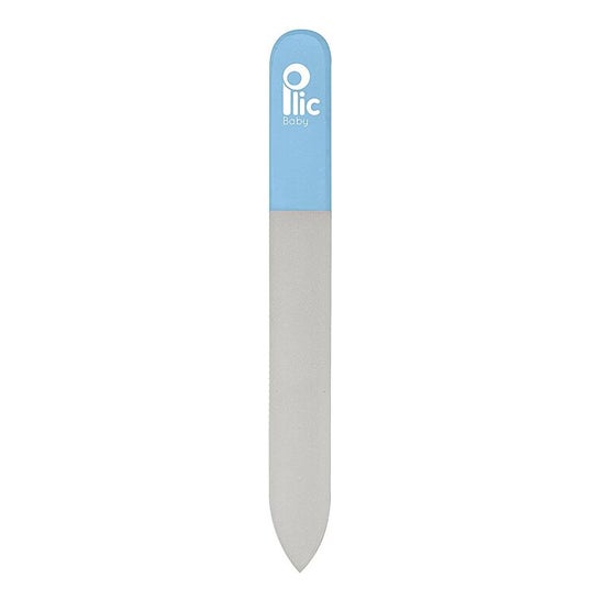 Nagelfeile für Babys oder brüchige Nägel von Plic Baby, das Design bietet ein sicheres und bequemes Format für die richtige Anwendung bei Babys oder Personen mit empfindlichen und leicht brechenden Nägeln. Die Feile ist mit einem geschliffenen Glasfragment versehen, das mit abgerundeten Kanten veredelt ist. Der Griff in Hellblau hat ein optimales Design für einen einfachen und effektiven Halt.