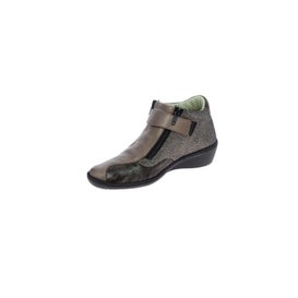 Dieser moderne, feminine und sehr bequeme, geschlossene Bootie-Schuh ist dank seiner stabilen und sicheren Sohle mit 25 mm Absatz ideal für den Außenbereich geeignet. Dank des doppelten Verschlusssystems lässt er sich leicht an- und ausziehen. Das weiche Obermaterial aus Leder passt sich perfekt an den Fuß an und bietet mit seinen inneren und äußeren Dehnungszonen hohen Komfort bei Hallux valgus oder Quintus varus. Der gepolsterte Schaumstoffkragen stützt den Knöchel und schützt den Malleolus. Die herausnehmbare Innensohle ist aus Leder und sorgt für einen angenehmen Kontakt mit dem Fuß. Dieses Medizinprodukt der Klasse I ist ein reguliertes Medizinprodukt, das die CE-Kennzeichnung gemäß diesen Vorschriften trägt.