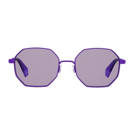Mit einem leichten und langlebigen Metallrahmen und polarisierten Triacetat-Gläsern in Violett, bietet diese Brille: