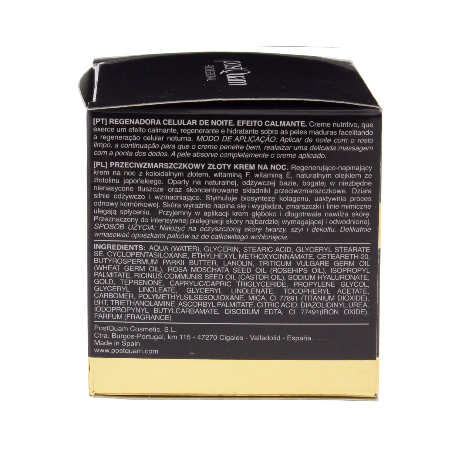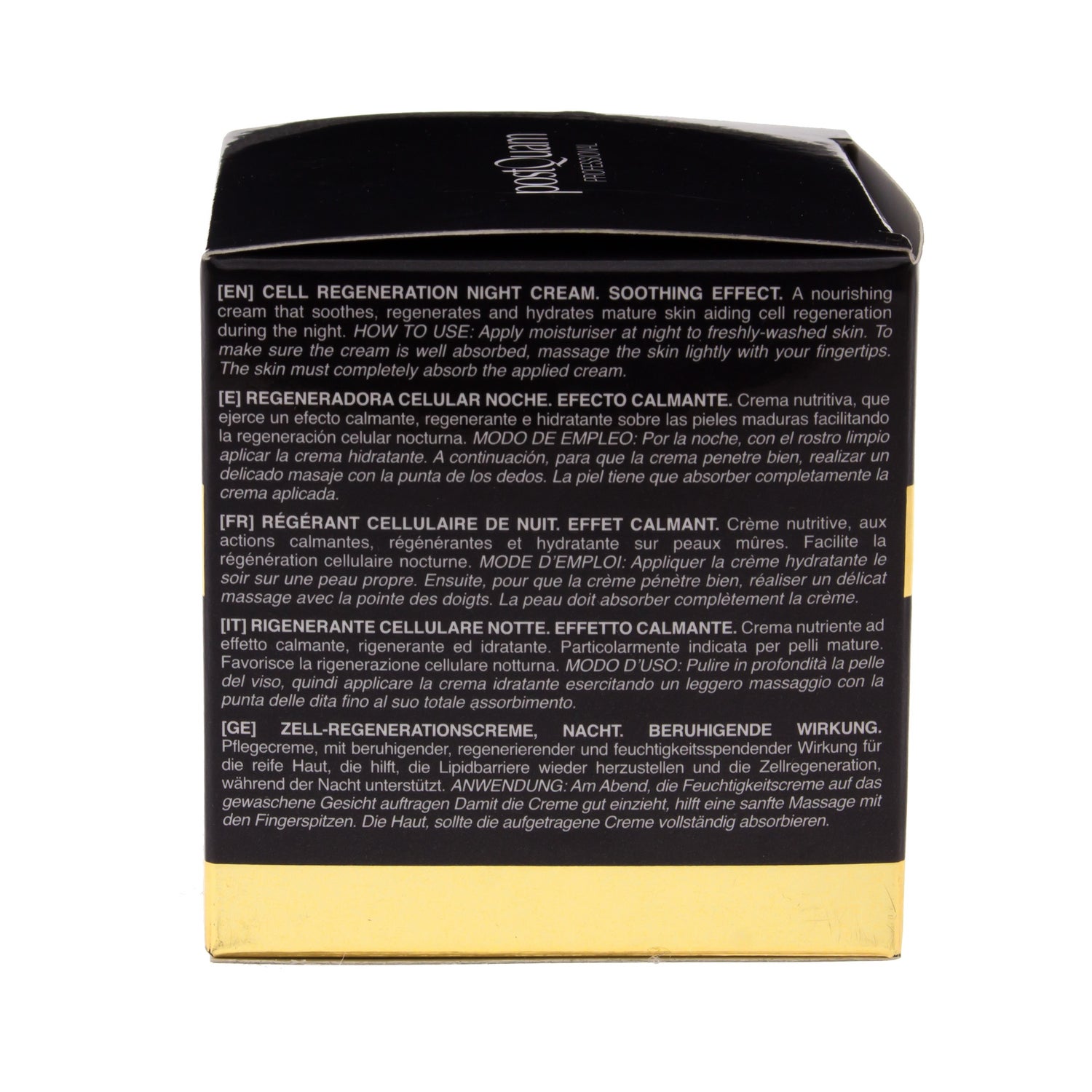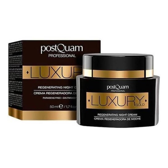 Die Postquam Luxury Gold regenerierende Nachtcreme pflegt die Haut in der Tiefe und unterstützt die nächtliche Zellregeneration. Darüber hinaus hat sie eine beruhigende Wirkung auf die Gesichtshaut und spendet besonders viel Feuchtigkeit.