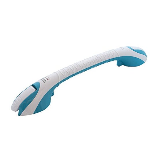 Saugnapf-Haltegriff, der speziell dafür ausgelegt ist, an strategisch wichtigen Stellen, an denen Personen mit Mobilitätsproblemen unsicher sind, einen Halt zu bieten, wie zum Beispiel beim Ein- und Aussteigen aus der Dusche oder Badewanne. Er benötigt keine Installation und verfügt über ein Sicherheitssystem, das warnt, wenn er nicht richtig haftet, was für zusätzliche Sicherheit sorgt. Es wird empfohlen, ihn auf einer glatten, nicht rauen Oberfläche anzubringen, um eine bessere Haftung zu gewährleisten.