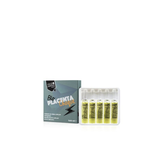 Real Natura Ampullen Bio Placenta Shock 5x10 ml für Haare ist eine intensive Behandlung in Einzeldosen von 10 ml, präsentiert in einem Pack mit 5 Einheiten. Es ist angezeigt für: