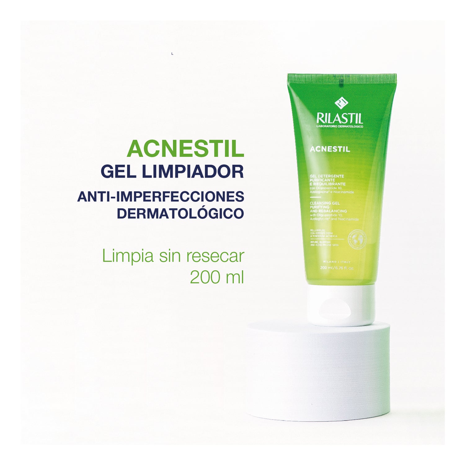 Rilastil Acnestil Anti-imperfection Cleansing Gel 200ml ist ein Gesichtsreiniger, der hilft, die Haut zu reinigen und mit Feuchtigkeit zu versorgen , ohne einen trockenen und gespannten Effekt zu hinterlassen.