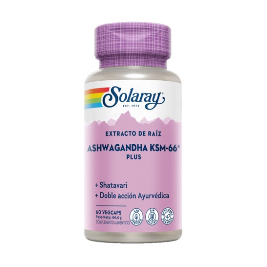 Solaray Ksm66 Plus Ashwagandha 60 Vegcaps ist ein Nahrungsergänzungsmittel, das aus Withania somnifera hergestellt wird, standardisiert, um 1,5% Withanolide, die aktiven Verbindungen dieser Pflanze, bereitzustellen.