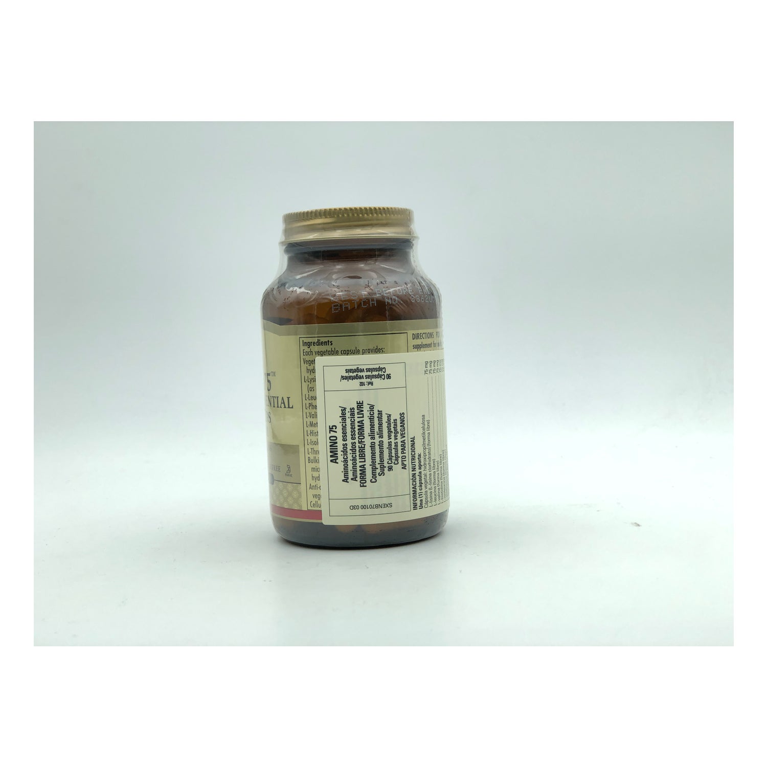 Solgar Amino 75 90vcap ist ein Nahrungsergänzungsmittel in Kapselform, das 8 essentielle Aminosäuren enthält.