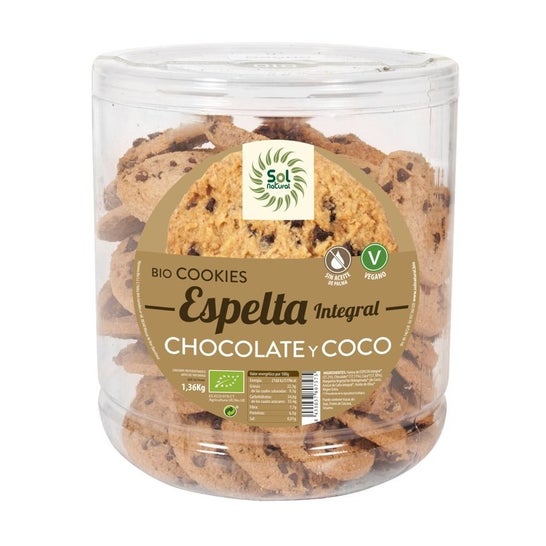 Kekse mit Dinkel, Kokosnuss und Schokolade zu den Mahlzeiten oder als Snack. Hergestellt mit Zutaten aus biologischem Anbau. Ideal für den Verzehr zu jeder Tageszeit, zum Frühstück oder als Snack. Auch als Zwischenmahlzeit oder zum Kaffee.