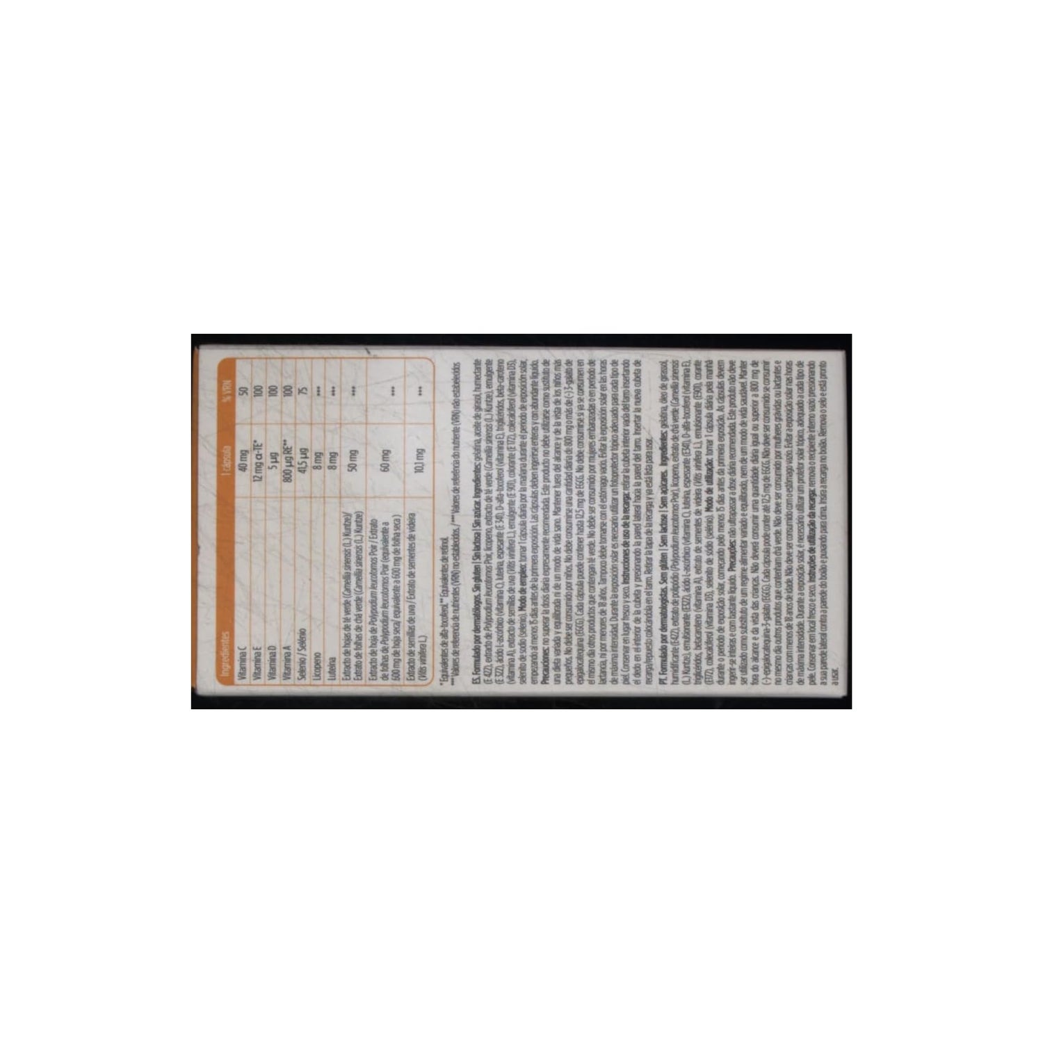 Basierend auf demVitAox Ultra Komplex mit antioxidativen Vitaminen, Carotinoiden, Mineralien und Extrakten natürlichen Ursprungs. Neben Vitamin D, Lutein und Beta-Carotin trägt es zur Verbesserung der Augengesundheit und zur Vorbereitung der Haut auf das Sonnenbad bei.
