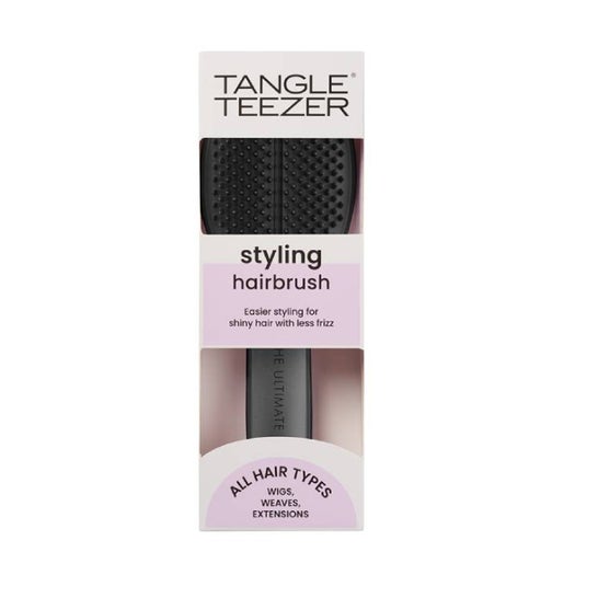 Tangle Teezer The New Ultimate Black 1ud ist eine schwarze Bürste mit ovaler Basis, schlankem Griff und flaschenförmigen Borsten.
