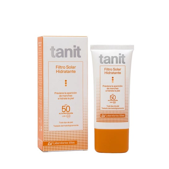 Tanit Sonnenschutzmittel feuchtigkeitsspendend 50ml ist ein feuchtigkeitsspendender Sonnenschutz für den täglichen Gebrauch, geeignet für alle Hauttypen, auch für die empfindlichsten. Dank seiner aktiven Inhaltsstoffe verhindert es die Entstehung von dunklen Flecken auf der Haut.