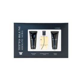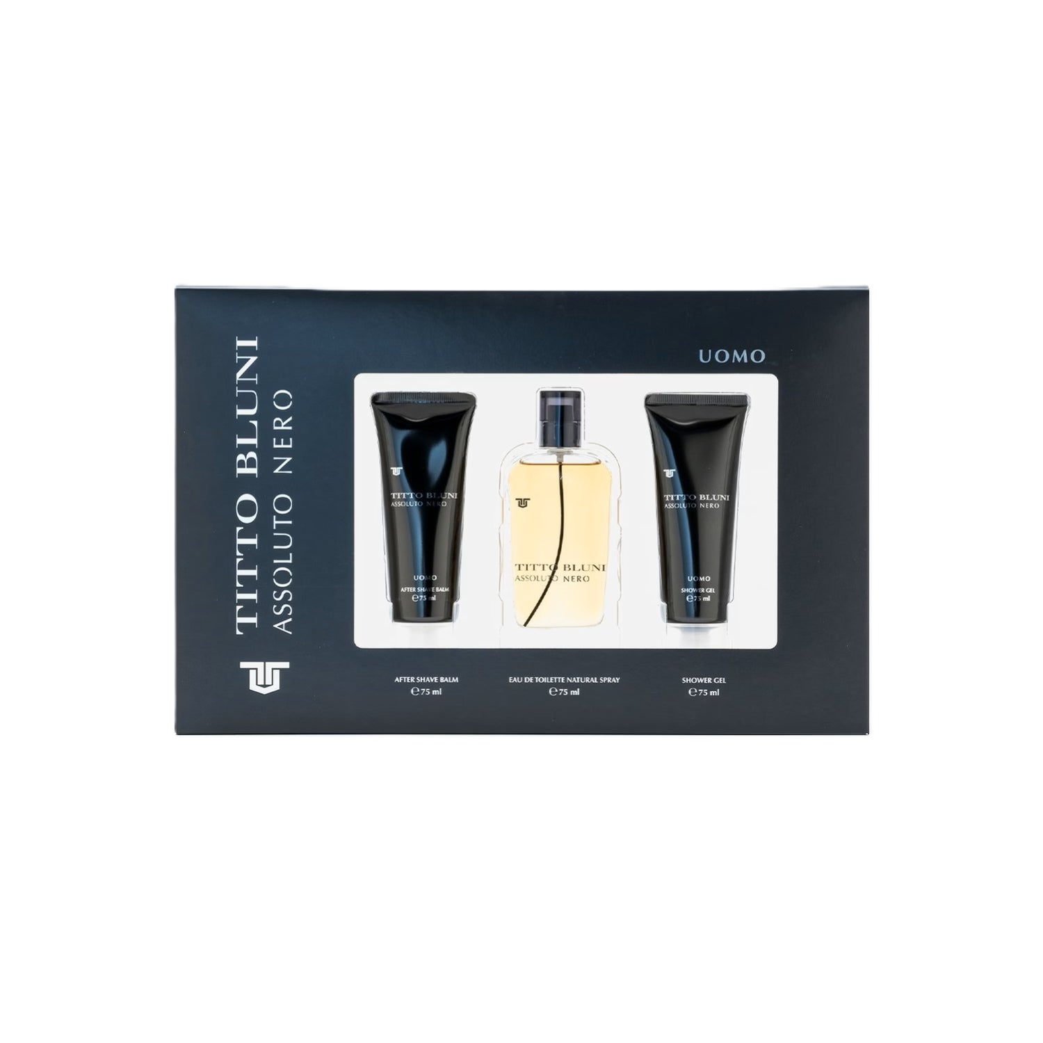 Titto Bluni Assoluto Nero Uomo Set enthält ein Eau de Toilette von 75 ml, ein Duschgel von 75 ml und einen After Shave von 75 ml. Dieses Set bietet ein komplettes Pflegeerlebnis.