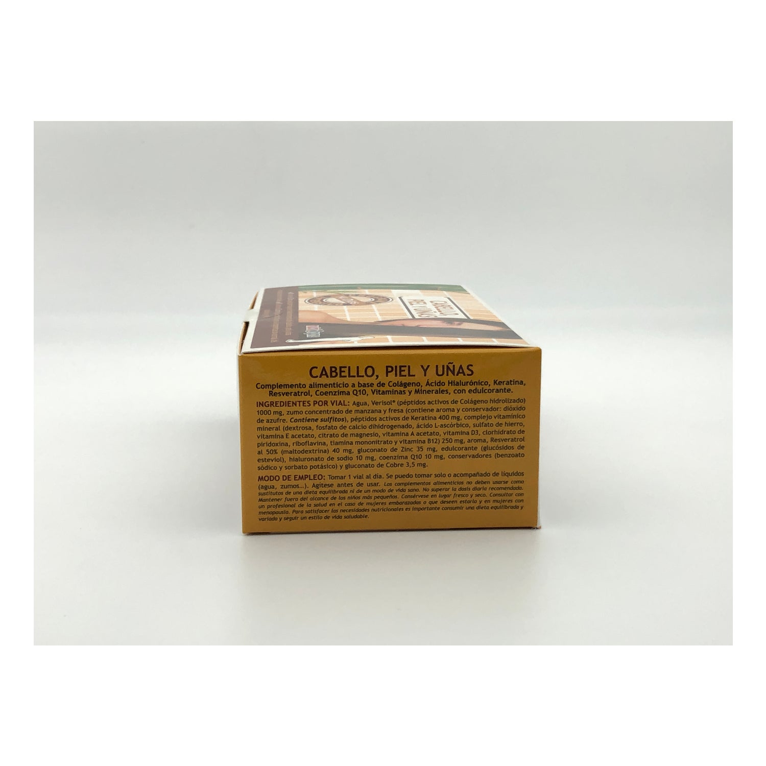 Es enthält eine Kombination aus Keratin, Kollagen, Hyaluronsäure, Resveratrol, Coenzym Q10, Vitaminen und Mineralien, Komponenten, die zur Erhaltung gesunder Haut, Nägel und Haare beitragen.