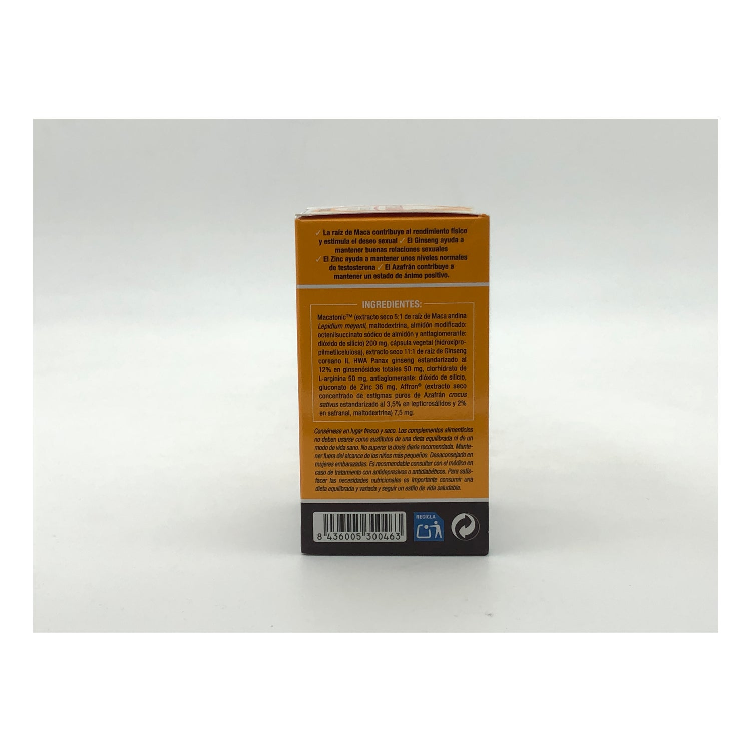 Die Maca-Wurzel trägt zur körperlichen Leistungsfähigkeit bei und stimuliert das sexuelle Verlangen. Ginseng trägt zur Aufrechterhaltung guter sexueller Beziehungen bei und fördert die Vitalität. Darüber hinaus enthält es Zink , das zur Aufrechterhaltung eines normalen Testosteronspiegels beiträgt, und Safran trägt zur Erhaltung einer positiven Stimmung bei.