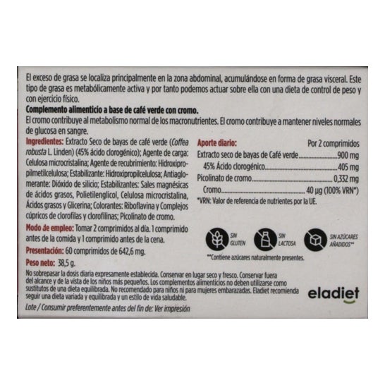 Triestop Rohkaffee ist ein Nahrungsergänzungsmittel, mit dem Sie das Gewicht kontrollieren können. Dieses Produkt ist besonders geeignet für Schlankheitskuren oder Gewichtskontrolle. Seine Zusammensetzung besteht aus Rohkaffee und Chrom, die den Stoffwechsel anregen und gleichzeitig die Ansammlung von Fetten verhindern, was den Verlust von Gewicht und Körpervolumen erleichtert;