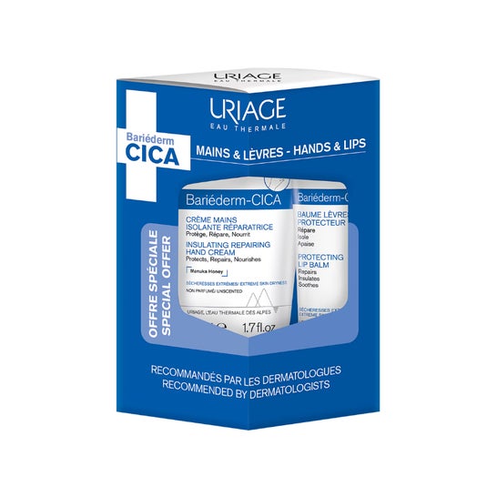 Uriage Bariederm-Cica Handcreme 50 ml + Lippenbalsam 15 ml ist ein Set, das für den intensiven Schutz und die Reparatur deiner Hände und Lippen entwickelt wurde. Dieses essentielle Duo ist formuliert, um die am stärksten exponierten und empfindlichen Bereiche zu pflegen, und ist ideal bei widrigen Wetterbedingungen, nach häufigem Waschen oder der Verwendung aggressiver Produkte.