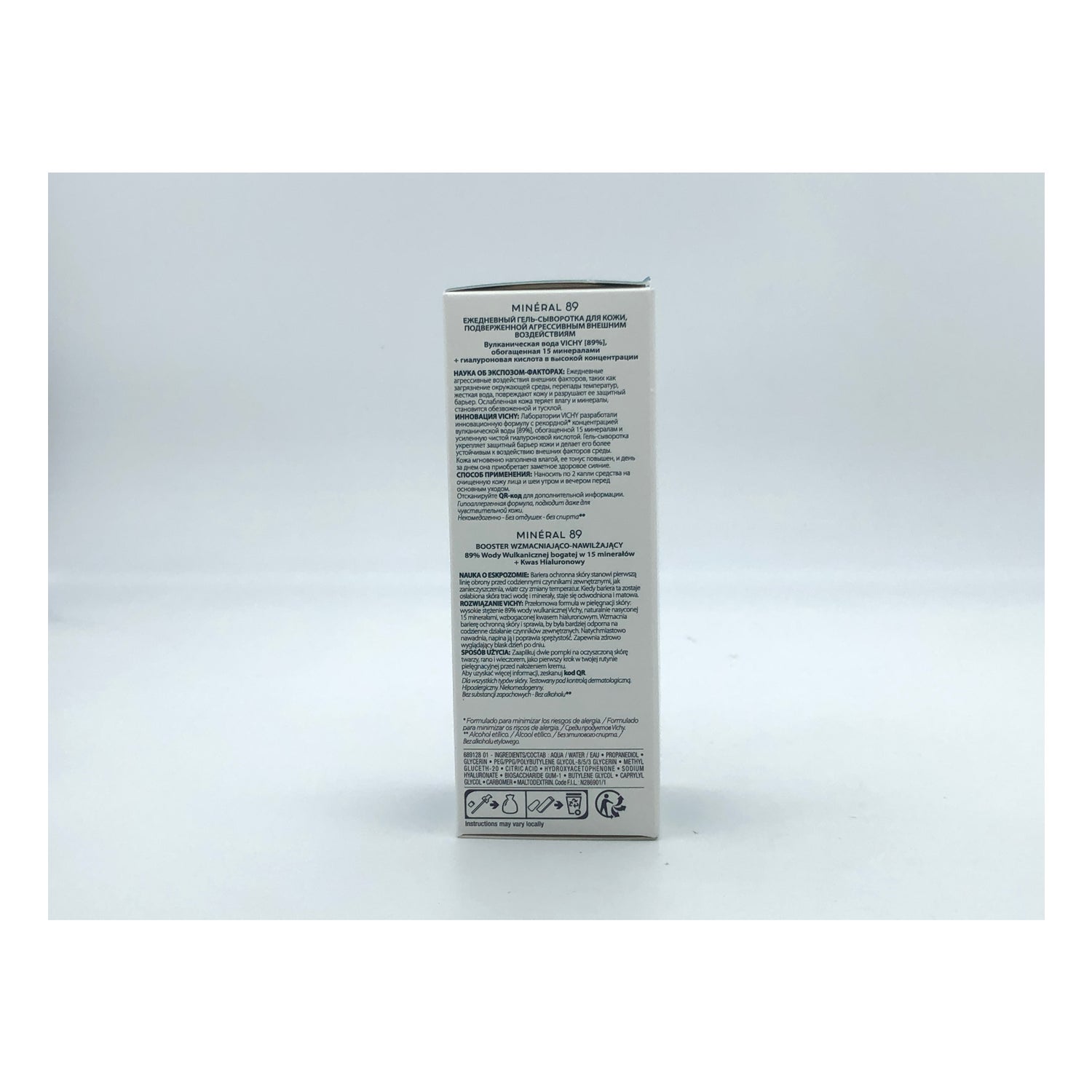 Sie enthält 89% Vichy-Vulkanwasser, das den Feuchtigkeitsgehalt der Haut bewahrt und ihr die täglich benötigte Dosis Wasser zuführt. Sie enthält außerdem einen hohen Anteil an Hyaluronsäure, die das Gesicht mit Feuchtigkeit versorgt und es zum Strahlen bringt.