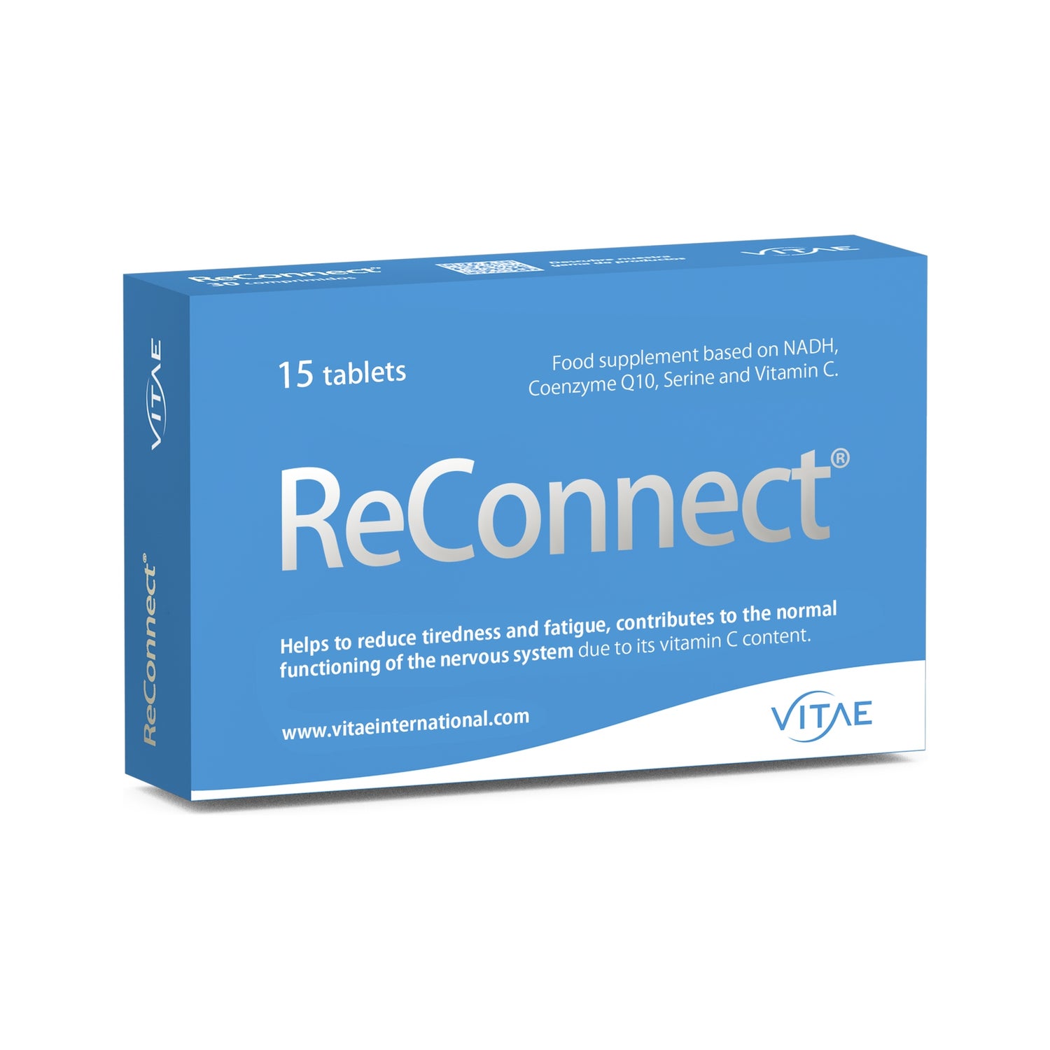 Vitae Reconnect 15comp ist ein Nahrungsergänzungsmittel mit NADH, Coenzym Q10, Serin und Vitamin C, das zur Verbesserung der körperlichen und kognitiven Leistungsfähigkeit beiträgt.