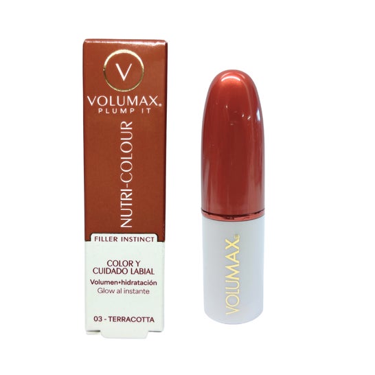 Volumax Plump It Nutri Color 03 Terracota ist ein Produkt, das entwickelt wurde, um die Schönheit deiner Lippen zu betonen und Volumen und Definition zu verleihen. Seine innovative Formel enthält Tripéptido-1 Biomimético, das die Produktion von Kollagen und Glykosaminoglykanen anregt und dazu beiträgt, die Festigkeit und Dichte deiner Lippen zu erhöhen. Dieser Effekt führt zu volleren und jugendlicher aussehenden Lippen auf lange Sicht und bietet sofort sichtbare Ergebnisse.