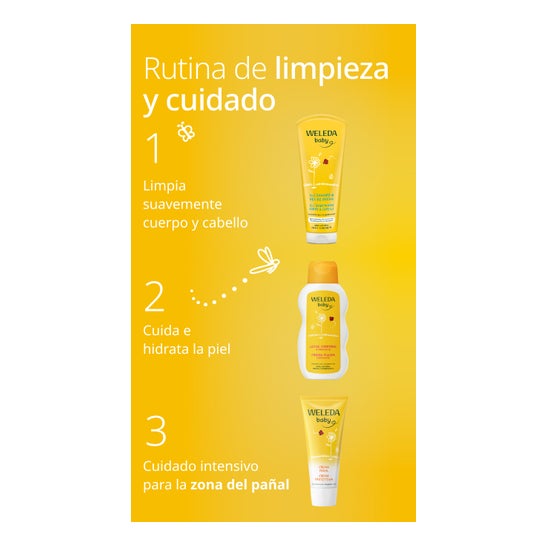Weleda ist eine auf Babypflege spezialisierte Marke und ihre Calendula Waschlotion & Shampoo ist ideal, um die Haut und das Haar des Babys auf sanfte Weise zu reinigen.
