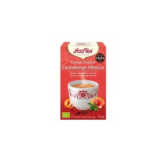 Yogi Tee Positive Energie ist eine biologische ayurvedische Aufgusszubereitung mit Pflanzen, Früchten und Gewürzen mit schwarzem Tee.