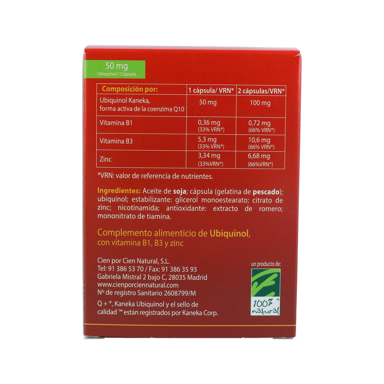 100% Natural Quinol 10 90capsules is aperfect supplement for everyone, but for those who are in their 40s it is especially recommended, since it must be taken into account that the ability to transform ubiquinone into ubiquinoldecreases with age and inthis product the coenzyme Q10 is already in the form of Ubiquinol.It also contains vitamin B1 which contributes to the normal functioning of the cardiovascular system and vitamin C whichsupports normal energy metabolism.