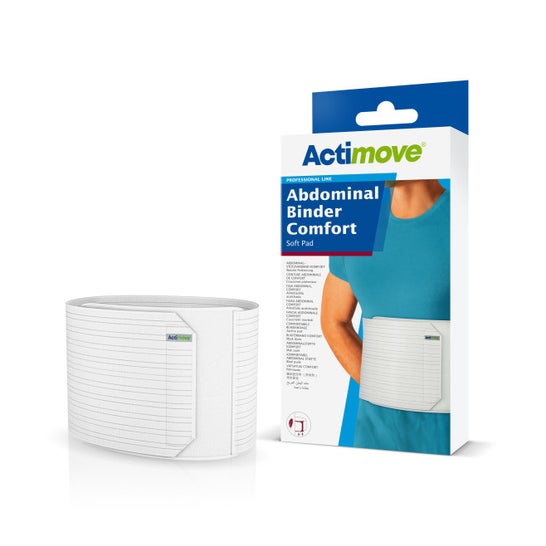 Actimove Abdominal Girdle Binder Comfort Size M 1ud is an abdominal girdle that helps reduce pain and promotes wound healing through compression around the abdomen. It is especially indicated after surgery or trauma. It is designed with elastic material and includes a foam pad that helps protect the injured area. It is also machine washable. *For hygienic reasons, we do not accept returns of this product once opened. It can only be returned if it retains the seal, and provided that the box shows no signs of having been tampered with.