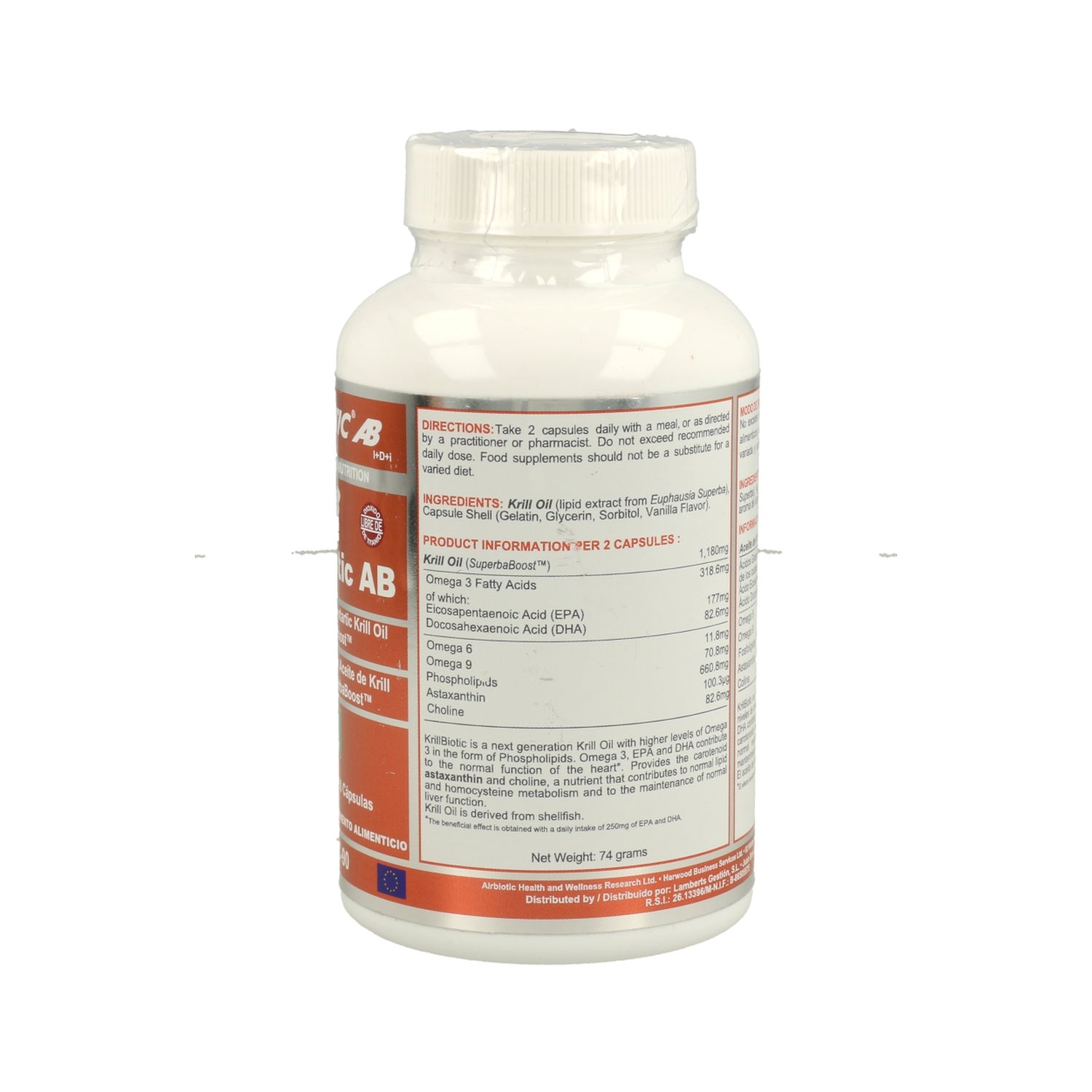 Airbiotic Krillbiotic AB 590 Mg Ecoharvesting 90 Capsules is a supplement based on krill oil, a small shrimp-like crustacean that inhabits the waters of Antarctica and constitutes a large part of the aquatic population.